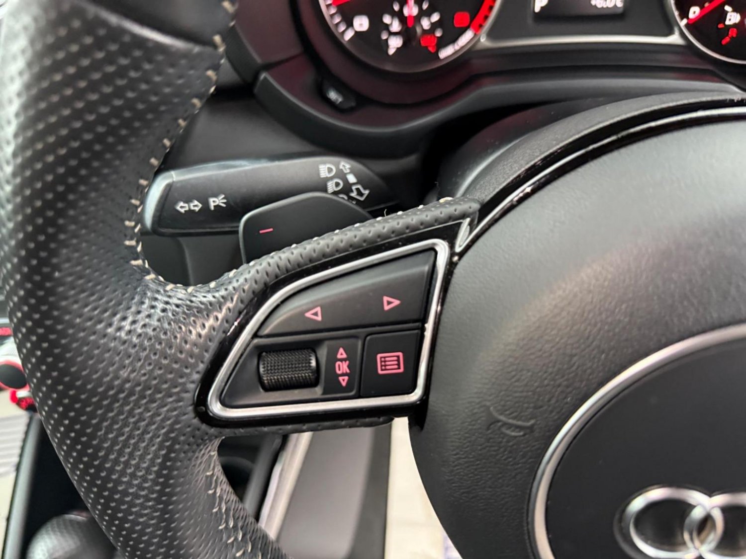 18in Alloy Wheels - 5-V-Spoke Design Titanium Look-Diamond Cut, 6.5in MMI Display Screen in High-gloss Black - Manually Retractable, AMI - Audi Music Interface, AUX-IN Socket, Acoustic Parking System - Rear, Adaptive Brake Lights, Air Vent Sleeves - High Gloss Black, Aluminium Trim for Control Switches-Glove Compartment-Door Handles-Door Sills, Anti Theft Locking Wheel Bolts, Audi Drive Select, Audi Sound System, Black Styling Package, Centre Console in High-Gloss Black, Centre Console with Two Cup Holders and 12V Socket, Cloth Headlining in Black, Concert Radio, Connectivity Package, Cruise Control, DAB Digital Radio, Door Mirrors - Body Coloured with Integrated Indicators, Door Mirrors - Electrically Adjustable and Heated, Door Sill Trims - Aluminium with S Line Logo, Driver - Front Passenger - Front Side and Head Airbag System, Driver and Front Passenger Seats with Manual Height-Forwards and Backwards Adjustment, Drivers Information System - DIS, ESC - Electronic Stabilisation Control, Electric Windows - Front and Rear, Electromechanical Power Steering, Electronic Climate Control, First Aid Kit, Front Floor Mats, Front Fog Lights, Front Passenger Airbag Deactivation Switch, Glovebox - Illuminated, Head Restraints - Rear, Headlights - Xenon, Heat Insulating Glass - Windscreen and Side Windows, Heated Rear Windscreen, Hill Hold Assist, ISOFIX Child Seat Mounting, LED Interior Light Package, LED Rear Lights, Leather Handbrake Grip and Sports Gear Knob with Aluminium Trim, Light and Rain Sensor, Manually Adjustable Lumbar Support in Front Seats, Mobile Telephone Preparation - Bluetooth Interface, Pedals in Stainless Steel, Privacy Glass, Rear Fog Lights, Remote Central Locking with 2 Fold Away Keys, S Line Sports Suspension, SD Card Reader, Satellite Navigation System - SD Card Based, Seat Belt Height Adjustment for Front Seats, Seat Belt Monitoring, Secondary Collision Brake Assist, Split Folding Rear Seat, Steering Wheel - 3-Spoke Leather Sports Multi-Function Flat-Bottomed, Steering Wheel - Height and Reach Adjustable, Styling Package - High-Gloss Black, Thatcham Category 1 Alarm and Immobiliser, Three Rear Seats, Three-point Seat Belts, Tool Kit and Car Jack, Tyre Pressure Monitoring System, Tyre Repair Kit, USB Charging Adaptor, Voice Control of Key Telephone and Radio Functions, Warning Triangle, Washer Fluid Level Indicator