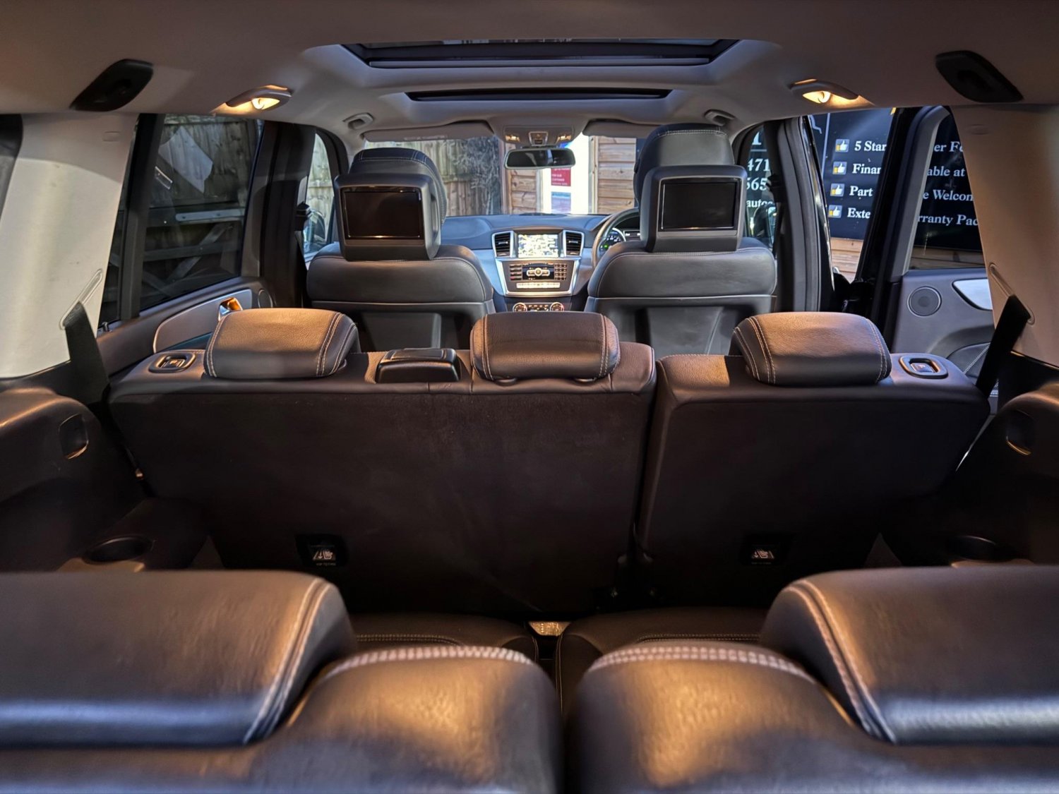 Cup Holder - Twin, DAB Digital Radio Tuner, DSR - Downhill Speed Regulation with Switch and Variable Speed Control, Dashboard Upper Section in Artico Leather, Daytime Running Lights - LED, Direct Select Shift Lever with Steering Wheel Shift Paddles, Direct Steering, Door Mirrors - Drivers Automatically Dimming, Door Mirrors - Electrically Adjustable-Folding-Heated, EASY-PACK Powered Tailgate, ECO Start-Stop Function, ESP - Electronic Stability Programme, Easy-Entry System - Third Seat Row-Left and Right, Electric Glass Sunroof, Electric Parking Brake, First Aid Kit, Four-Wheel Electronic Traction System - 4ETS, Front Seats - Full Electric Adjustment - Backrest-Height and Longitude, Fuel Computer, Head Restraints - Front - Adjustable for Height and Angle, Headlight Assist - Automatic Headlight Activation, Headlight Wash, Headlights - Adaptive High Beam Assist, Headlights - Bi-Xenon, Headlights - Intelligent Light System, Heated Rear Window with Timer Control, Heated Windscreen Washer System, High Level Third Brake Light, Hill Start Assist, ISOFIX and Top Tether Child Seat Fixing Points in Second Row Outer Seats and Third Row, Immobiliser, Integrated Rear Head Restraints, LED Rear Tail Lights, Linguatronic Voice Control, Load-Securing Rings x6, Lumbar Support - Four Way Electric for Drivers Seat, Media Interface, Off-Road Switch, Outside Temperature Gauge, Parking Sensor - Front, Parking Sensor - Rear, Perforated Upholstery, Pollen Filter, Pre-Safe Anticipatory Safety System, Privacy Glass - From B-Pillar Backwards, Radiator Grille - 2 Louvres in Chrome, Rain-Sensing Wipers, Reading Lights - Front, Reading Lights - Rear, Rear Bumper with Integrated Reflectors, Rear Screen Wash-Wiper, Rear Seats - Second Row - Split Folding 1-3 2-3, Remote Boot Release, Remote Central Locking, Roof Rails - Chrome Finish, Running Boards - Aluminium Finish with Rubber Studs - LED-Illuminated, SD Memory Card Slot, SPEEDTRONIC Cruise Control, Satellite Navigation - HDD - Hard Disk Drive Map System with Traffic Information, Scratch Guard on Load Compartment Sill - Chrome, Seat Belt Pre-Tensioners and Force Limiters - Front-Second Row Outer Seats and Third Row, Seats - Heated Front, Seats - Rear-Third Row-Electrically Folding and Raising, Service Indicator ASSYST, Shoulder Line Trim Strips - Chrome, Space-Saver Spare Wheel - Steel, Speed Limit Assist, Steer Control, Steering Column - Manually Adjustable for Height and Reach, Steering Column Gear Selector, Steering Wheel - 4-Spoke-Trimmed in Nappa Leather with Perforated Grip Areas, Steering Wheel - Gear Shift Paddles, Steering Wheel - Multi-function, Steering Wheel - Sports, Sun Visors with Illuminated Vanity Mirrors, Tinted Glass - Green, Trailer Stability Assist, Trim - Brushed Light Aluminium, Tyre Pressure Monitoring System, Warning Triangle, Windows - Electric x4, eCall - Emergency Call System, 10GB Music Register and MP3 Compatibility, 12V Socket, 12V Socket in Load Compartment, 12V Socket in the Rear, 21in Alloy Wheels - AMG 5-Twin-Spoke Design, 3 Years Free European Map Updates, 7in Colour Display, ABS - Anti-Lock Braking System, AIRMATIC Air Suspension with Level Adjustment and Adaptive Damping System, AMG Bodystyling - Front and Rear Apron-Side Skirts and Flared Wheel Arches, ASR - Acceleration Skid Control, ATTENTION Assist, Active Bonnet - Pedestrian Safety Measure, Active Light System, Active Park Assist with Parktronic, Adaptive Brake Lights, Airbag - Driver, Airbag - Front Passenger, Airbags - Front Sidebags, Airbags - Windowbags, Alarm System with Interior Protection, Ambient Lighting - Underside of Exterior Door Mirrors, Auto Dimming Rear View Mirror, Automatic Child Seat Recognition Sensor, Automatic Climate Control, BAS - Brake Assist, Bluetooth Interface for Hands-Free Telephone, Brake Calipers with Mercedes-Benz Lettering, CD-DVD Radio, COMAND Online System with Media Interface, Cable included for iPod Connectivity, Central Controller Dial to Operate Audio and Telephone Functions, Centre Armrest - Front with Storage, Centre Armrest - Rear, Collision Prevention Assist, Cornering Light Function, Crosswind Assist, Cup Holder - Rear